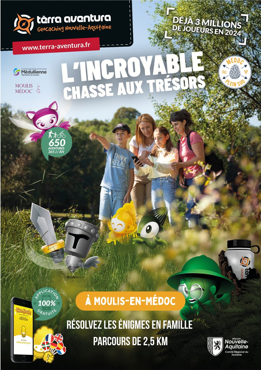Sur l'application TĂšrra Aventura, sĂ©lectionner le parcours "Moulis : on va dĂ©guster !" et se laisser guider au fil des Ă©nigmes, Ă travers le village et les vignes.Â