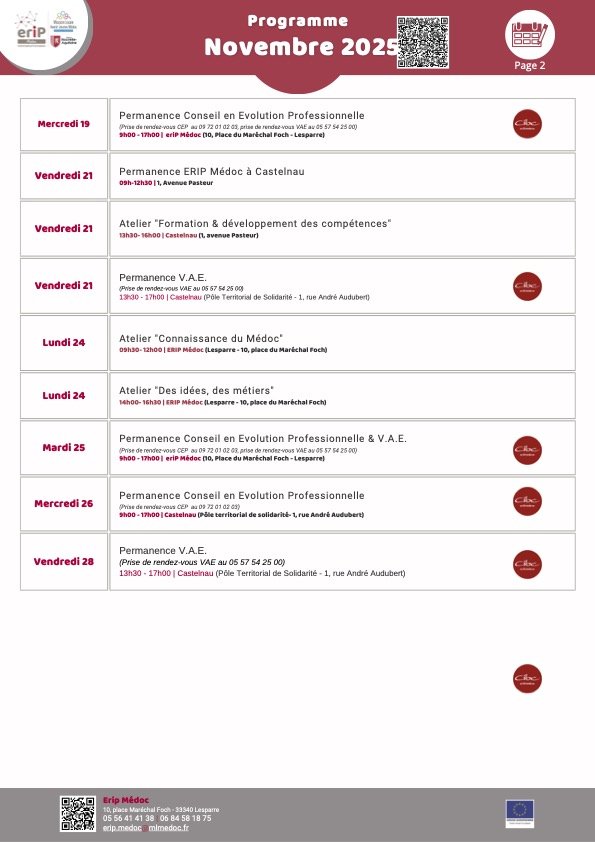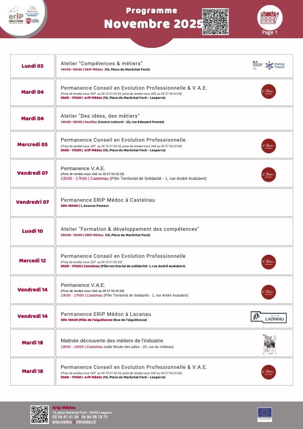 PROGRAMME DE NOVEMBRE ERIP MÉDOC