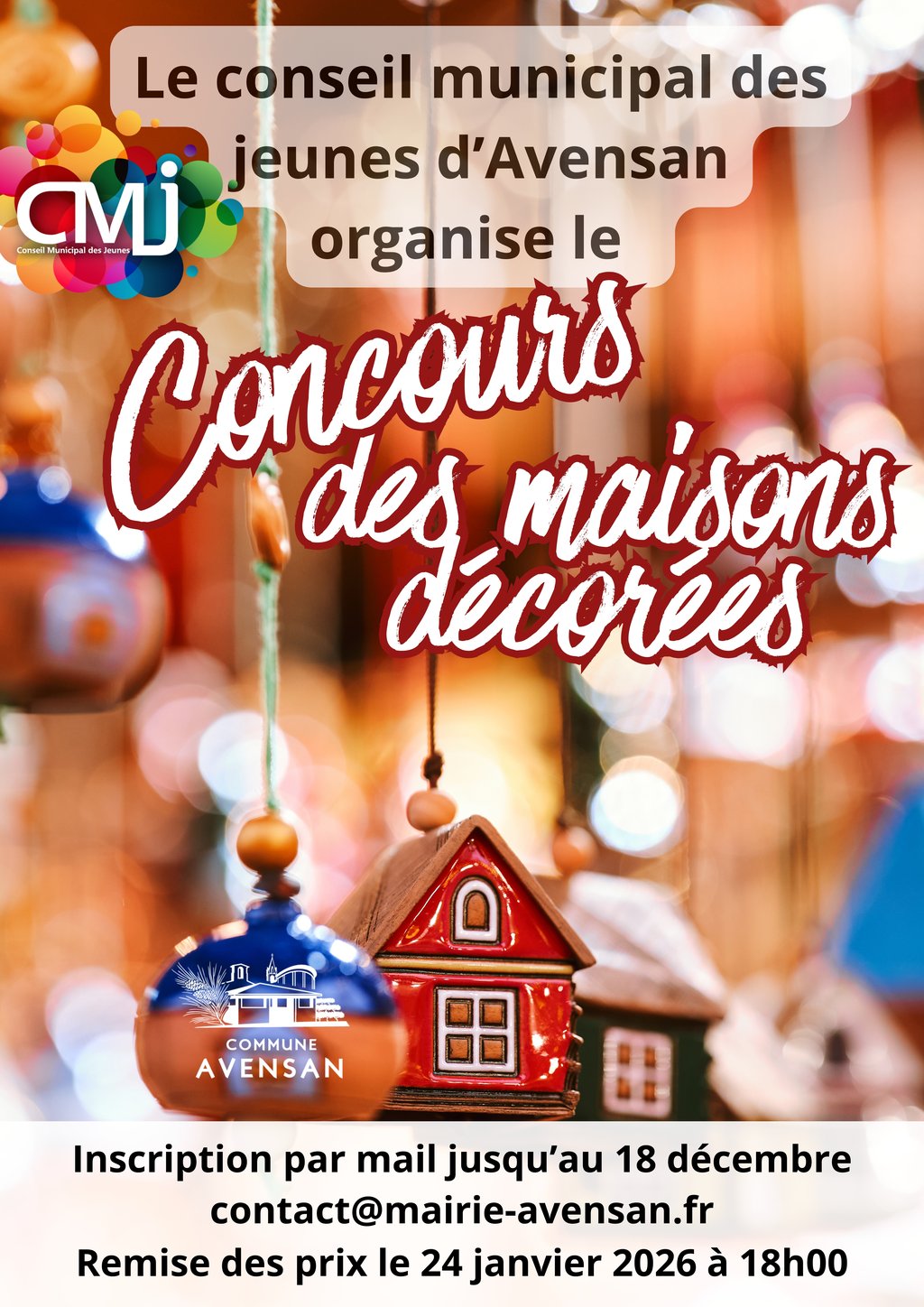Le Conseil Municipal des Jeunes (CMJ) d'Avensan a le plaisir de vous annoncer le lancement de son Concours de Noël des maisons décorées et illuminées ! 🎄