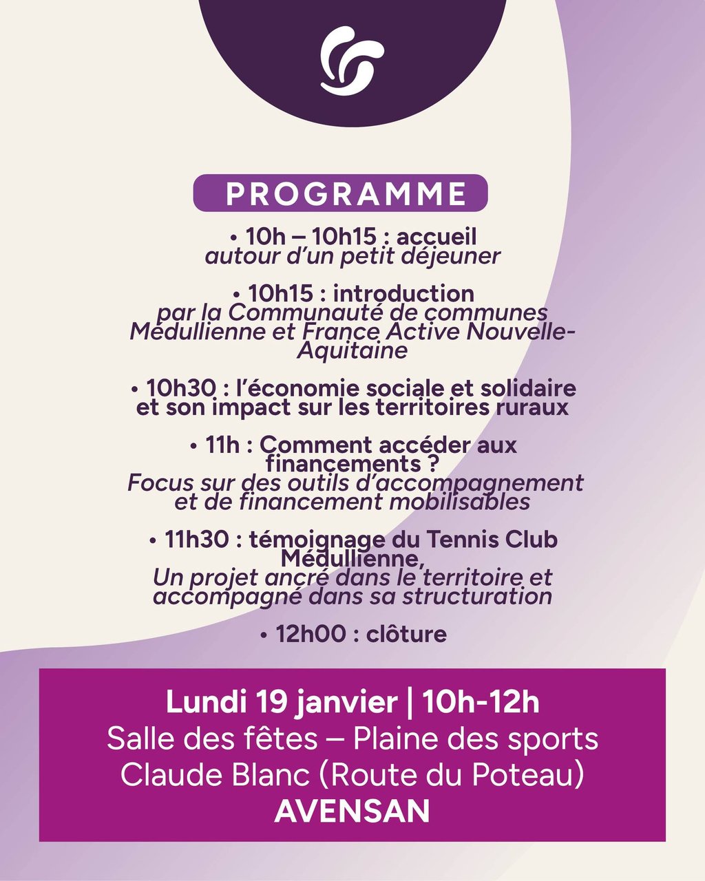 📅 Lundi 19 janvier de 10h à 12h