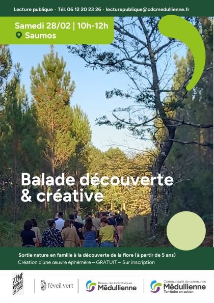 Le Réseau des bibliothèques de la CDC Médullienne vous invite à célébrer le réveil de la nature dans le cadre de son projet culturel 2026. Venez vivre une matinée inspirante où balade et création artistique ne font qu'un.