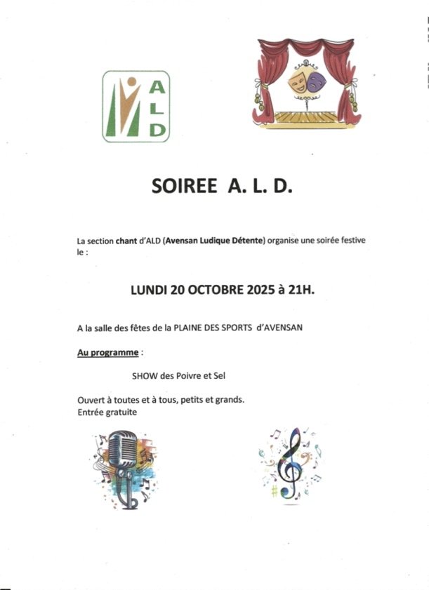🎶🎤La section chant d'ALD (Avensan Ludique Détente) organise une soirée festive, le lundi 20 OCTOBRE 2025.🎉