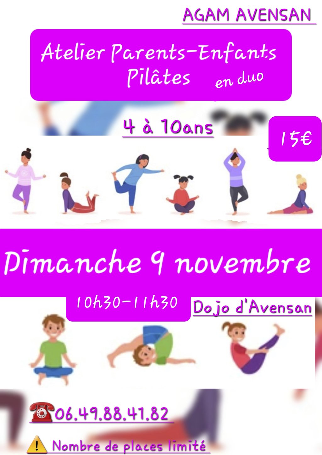 L'Association AGAM organise le dimanche 9 novembre un atelier Pilâtes Parents-Enfants (de 4 à 10 ans).