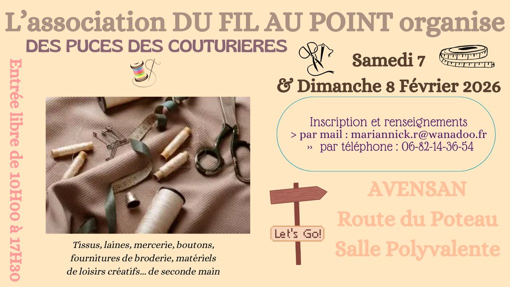 🪡🧵L'Association Du Fil au Point organise ses Puces des Couturières les 7 et 8 février 2026, un événement dédié aux passionnés de fil, de tissu et de création.
